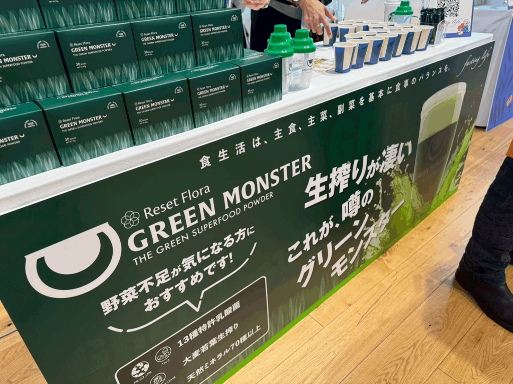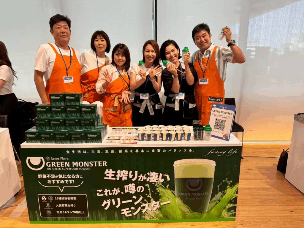 そのイベント「ご自愛市」にファスティングマイスター学院が推奨している、生搾り青汁の「グリーンモンスター」(販売元:ファスティングライフ株式会社)の試飲会がありました。