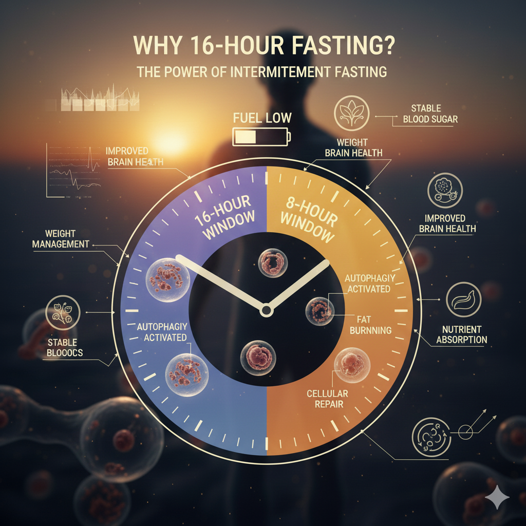 このリセット作用は、細胞が本来の機能を保つために重要であり、体全体のコンディションを整える土台となります。16時間断食は、こうした細胞レベルのメンテナンスを日常生活の中で意識できる点が魅力です。