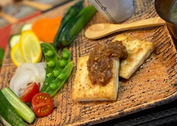 甘酒の自然な甘みでコクを出した、植物性タンパク質のメインディッシュです。