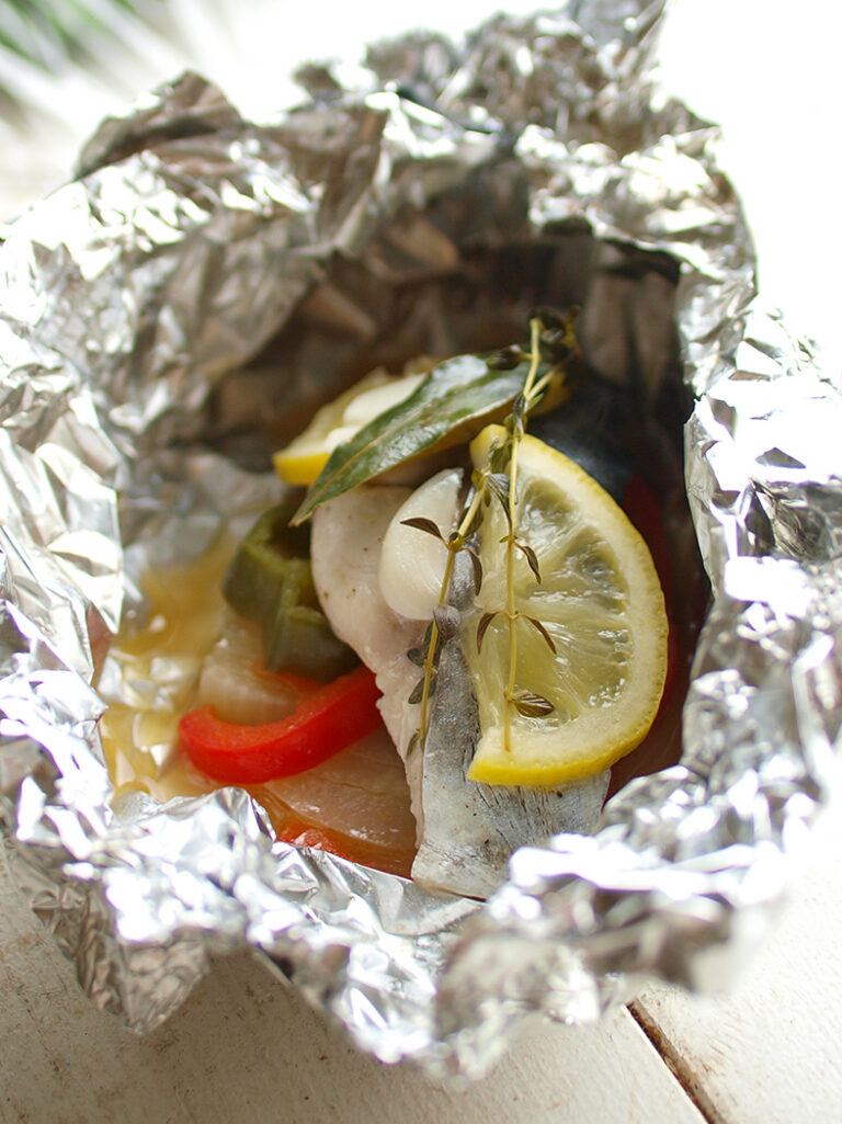 魚のホイル焼き(りんご味噌ソース)